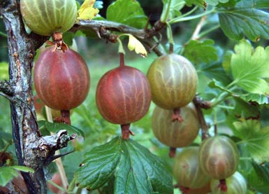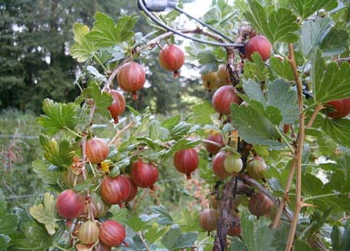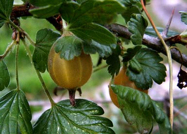 Stachelige, sommergrüne, bis 2 m hohe Sträucher. Behaarte Beeren, lecker für Kuchen und Süßspeisen, Reife im Juli.