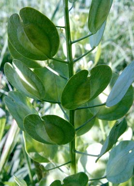 den flachen, münzähnlichen Schötchenfrüchten her