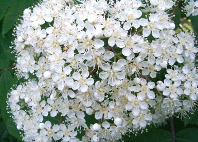 Blütenbälle im Mai und reife Beeren ab Juli. Oft auch verwildert.