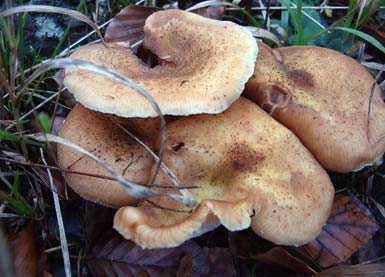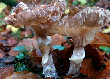 Essbar, nicht für jeden bekömmlich Gefunden an Baumstümpfen ab September Büscheliges Auftreten Baumschädling Mittelgroße Pilze, Hut- durchmesser 2 - 8 cm