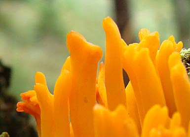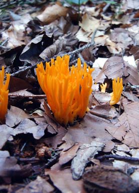 Kein Speisepilz: Ungenießbar Gefunden auf Baumstümpfenauch im Misch-, aber hauptsächlich Nadelwald im August & September Kleine Hörnchen, bis ca. 5 cm hoch