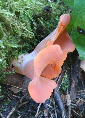 Essbar, auch roh (!) Gefunden am Laubwald- Boden und auf morschem Holz nur im August Bis 15 cm Durchmesser, Höhe bis max. 10 cm Durch die auffällige Farbe kaum zu verwechseln