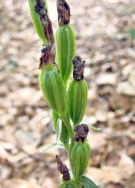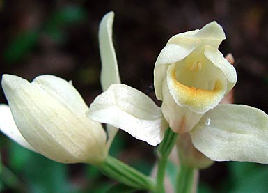 Auch hier können Sie die bei Orchideen typischen gedrehten Blütenstiele gut erkennen.