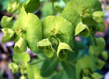 Im Laubwald blühend ab Mai Immergrün Bis 40 cm hoch Der Milchsaft ist bei fast allen Euphorbia-Arten giftig
