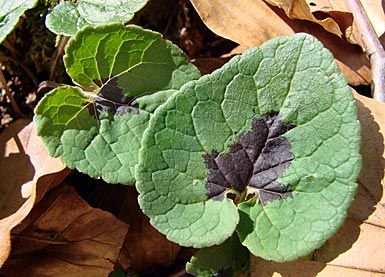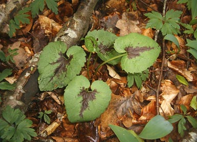 Junge Pflanze im April Über Buchen- und Mischwälder verbreitet, Blätter mit und ohne schokobraune Zeichnung Blüte im Juni. Blattzeichnung im Makro bis ca. 80 cm hoch