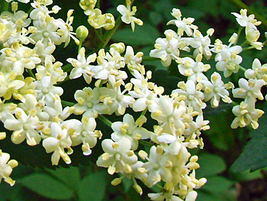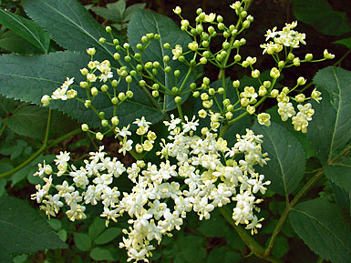 elderberry Sambucus nigra Geißblattgewächse Caprifoliaceae Duftende Blütenschirme im Mai, saftige reife Beeren ab September Zum roh essen nicht geeignet, aber lecker für Saft und Wein Der Tee aus den Blüten wird als Heilmittel gegen Grippe und Halsweh gegeben Sträucher lieben stick- stoffreichen Boden Unten sieht man ein herrlich verfilztes Dickicht aus uralten Holunder- büschen mit wildem Geschlinge und jeder Menge Totholz Vielen Dank an die Baden-Württemberger, die haben nämlich begriffen, dass man solche Dinge auch mal einfach sich selbst überlassen darf und damit vielen Tieren Schutz bietet! |