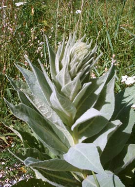 Große Pflanze, bis ordentlich über 2 m hoch Wenige große Blüten, auch weiß behaart an Knospen, Stängeln und Blättern Blüht auch im Juni