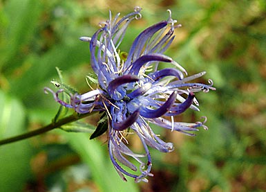 round-headed rampion Phyteuma orbiculare Glockenblumen- gewächse Campanulaceae Blütezeit Frühsommer bis ungefähr Juli oder August Bis ca. 40 cm hoch Mag kalkhaltige Böden und magere Wiesen. In Österreich noch verbreitet, in Deutsch- land seltener Fundort nahe Burg- hausen / österreichische Grenze |