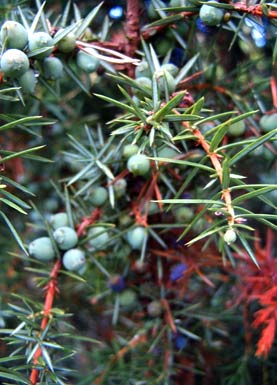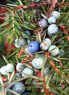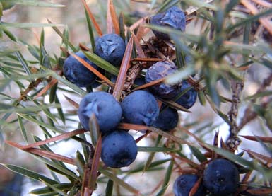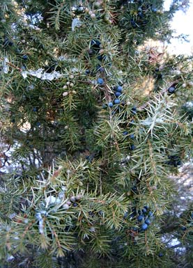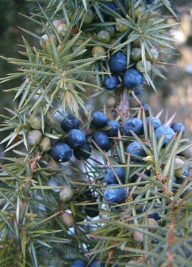 common juniper Juniperus communis Zypressen- gewächse Cupressaceae Blüten winzig & unscheinbar im Frühling Beeren ab August Auf höher gelegenen Wiesen und Lichtungen Typisch für die Hochflächen der Schwäbischen Alb Immergrüner Strauch oder Baum Beeren als Gwürz und zum Brennen von Gin Aromatisch duftendes Holz, oft zum Schinken- räuchern genutzt |