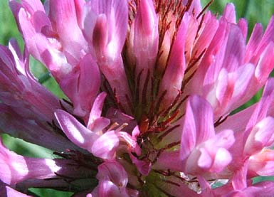 red clover Trifolium pratense Schmetterlingsblütler Fabaceae Blütezeit ab Mai bis weit in den Sommer Wiesen & Weiden Gute Bienenweide & Hummelblume, hochwertige Futterpflanze für Schafe und Rinder Ertragreich, rasch nachwachsend Bodenverbesserer, Vorfrucht für andere Kulturpflanzen Bis ca. 55 cm hoch |