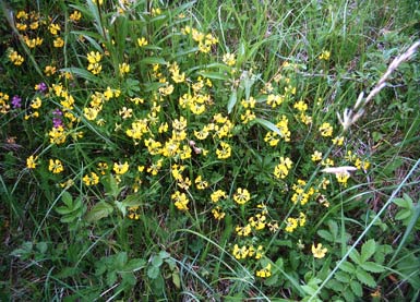 meadow pea Lathyrus pratensis Schmetterlingsblütler Fabaceae Gefunden im Mai Sehr schmale, längliche Blätter Rankpflanze, bis zu 1 m lang Enthält viele Bitterstoffe, deshalb kein guter Futterwert, wird von Rindern nicht gefressen |