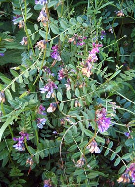 bush vetch Vicia sepium Schmetterlingsblütler Fabaceae Blütezeit Mai bis August Wiesen, Gebüsche, Wald- ränder, Hecken, Zäune Wicken können auch als Futterpflanzen oder Gründüngung verwendet werden. Diese ranken, je nach "Stütze", bis anderthalb Meter hoch Kürzere Blütenähren mit weniger Einzelblüten als die Vogelwicke |